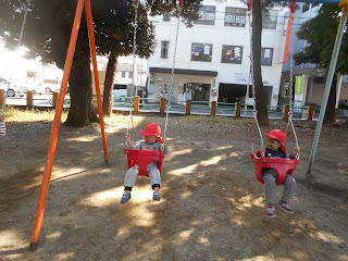 保育者やお友達と一緒に落ち葉を沢山拾うことを楽しんでいる姿が見られました。その後はブランコで遊び、楽しんでいましたよ♬